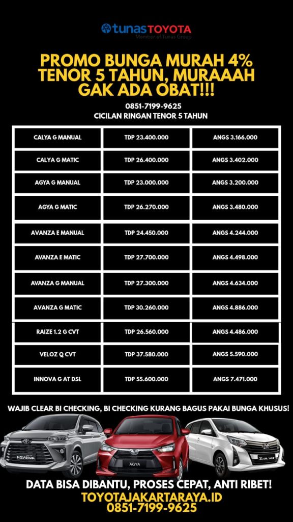 Official Website Dealer Resmi Tunas Toyota Kebayoran Lama, kami memberikan segala kemudahan dan kepuasan pelanggan untuk memilih mana varian mobil yang diinginkan. Menjadi prioritas utama kami untuk menciptakan kenyamanan pelanggan.